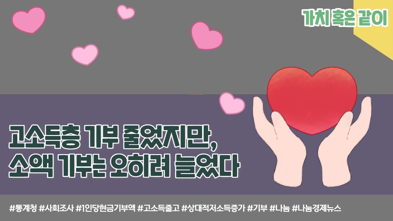 #통계청 #사회조사 #1인당현금기부액 #고소득줄고 #상대적저소득증가 #기부 #나눔 #나눔경제뉴스