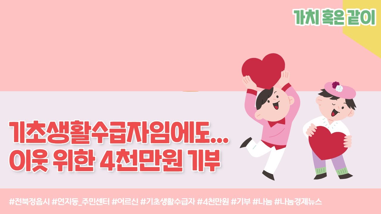 #전북 #정읍시 #연지동 #주민센터 #어르신 #기초생활수급자 #4천만원 #기부 #나눔 #나눔경제뉴스