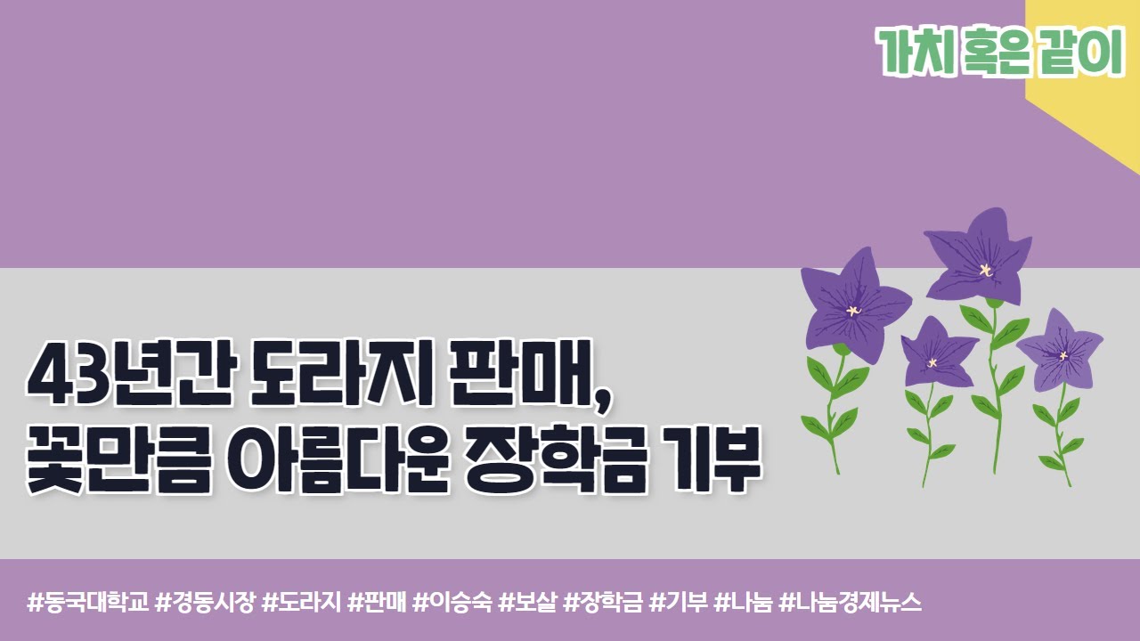 #동국대학교 #경동시장 #도라지 #판매 #이승숙 #보살 #장학금 #기부 #나눔 #나눔경제뉴스