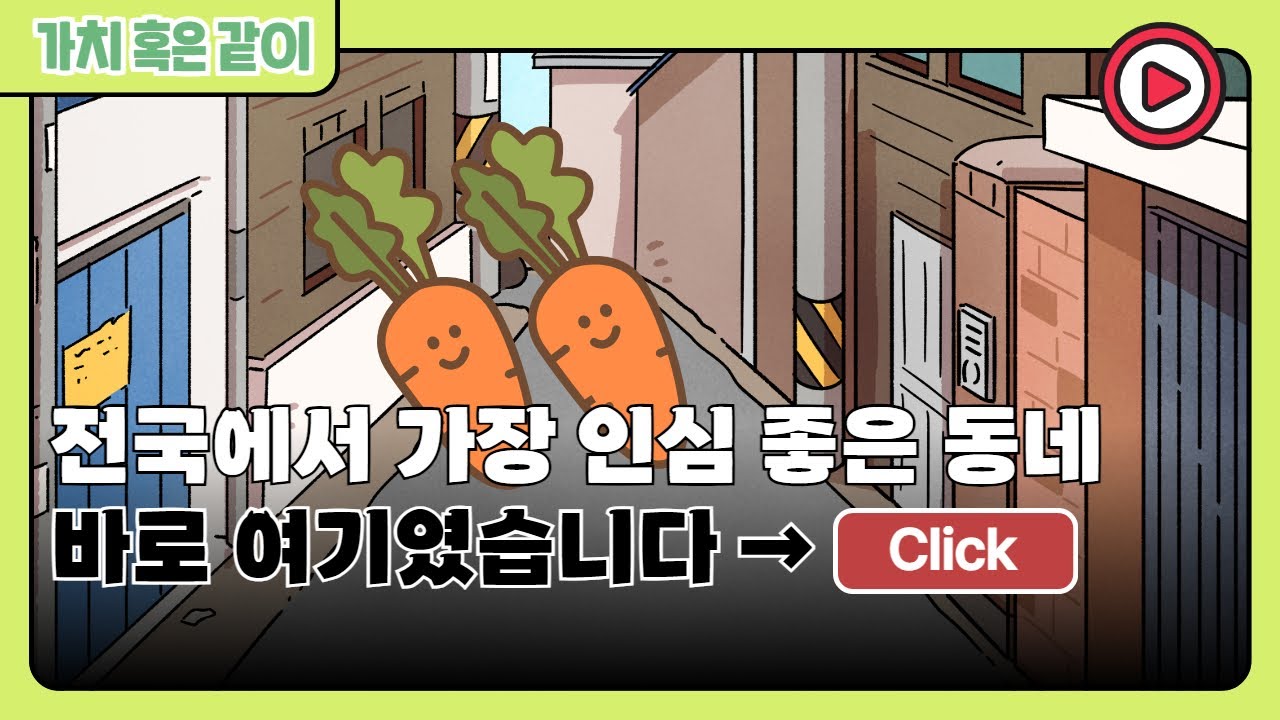 '가치 혹은 같이'는 함께 나누는 가치와 같이 나누는 이야기를 소개합니다. 유튜브에서 '나눔이'를 구독하시면 매주 더 많은 나눔 이야기를 보실 수 있습니다. 많은 구독과 시청 부탁드립니다.