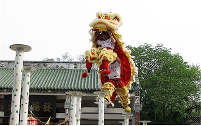 사자춤은 무술 동작과도 유사해 마치 화교사회의 집단방위 훈련처럼 보이기도 한다. 여학생들도 2인 1조가 되어 사자탈을 쓴 채로 2.5m 높이의 쇠 말뚝 위를 뛰어다니는 모습은 새로운 느낌을 준다.